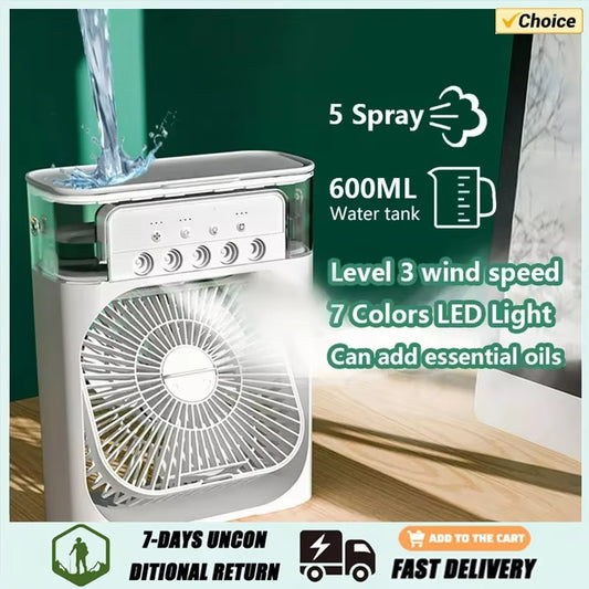 Ar Condicionado Portátil Com Luzes Noturnas LED, 3 Em 1 Ventilador, Pequeno Refrigerador De Ar, Umidificador, Casa Fãs, Dropship